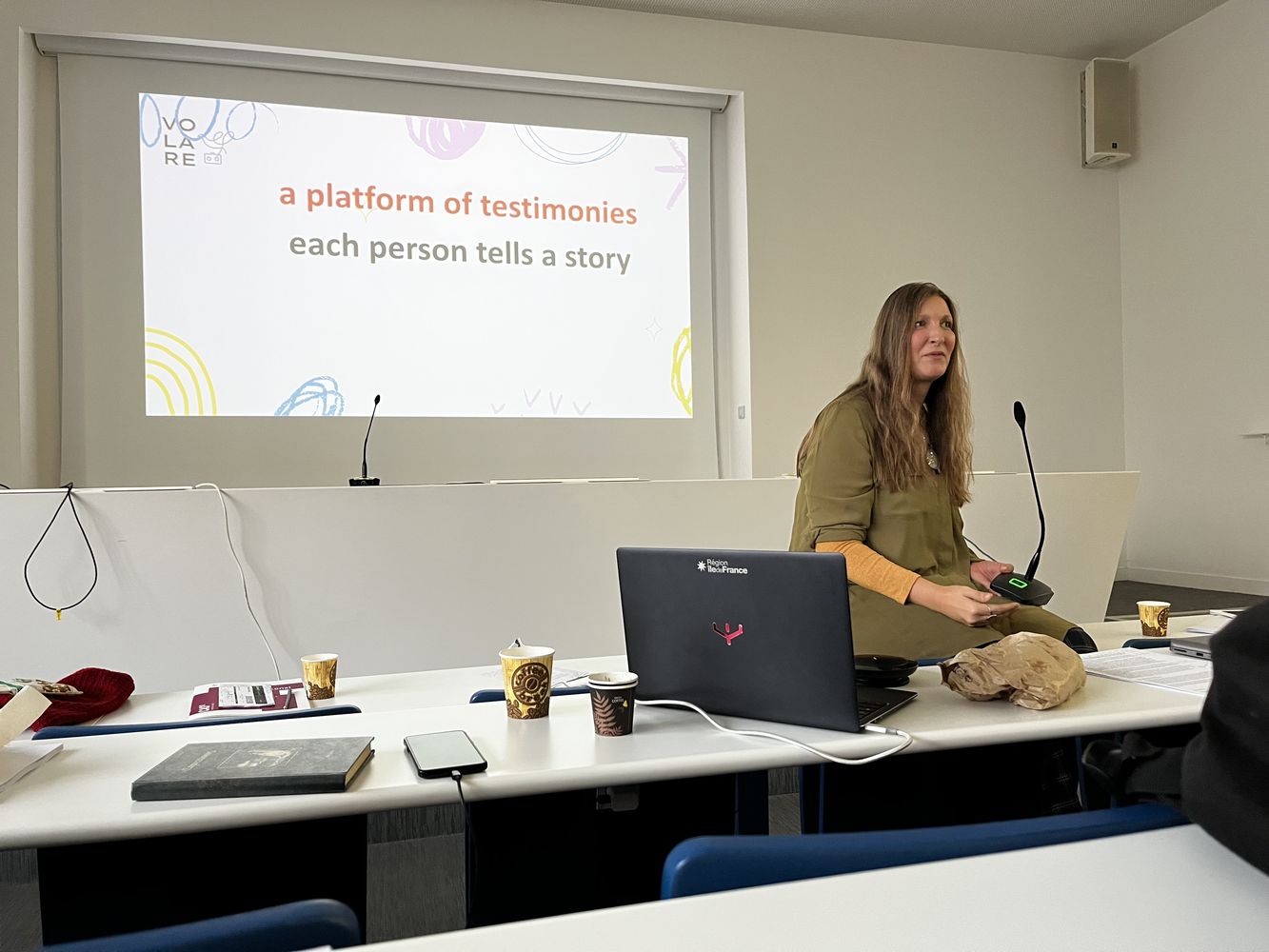 Le 16 novembre, à la Maison de la Recherche de l’Université Paris 8, s’est tenue la journée d’étude intitulée «Accueillir les singularités: migrations et humanité, ou quand un impératif commun émerge d’une crise majeure de notre temps». Cet événement, diffusé également en ligne, avait pour objectif d’adopter une approche multidisciplinaire des défis liés aux migrations. Académiques, chercheurs, artistes, étudiants et membres de la communauté ont partagé leurs réflexions au cours de 4 tables rondes, abordant des thématiques telles que les singularités culturelles et linguistiques, les pratiques artistiques et collectives, les voix des réfugiés et des migrants dans l’enseignement supérieur, et la praxis universitaire face aux défis politiques des migrations. Cette rencontre, qui a rassemblé des voix diverses et mis en lumière des approches innovantes autour de l’intégration des témoignages et de la multimodalité dans l’éducation, a permis des échanges enrichissants entre le projet VOLARE et d’autres groupes de recherche œuvrant sur ces problématiques. Elle a été largement suivie par les membres de la communauté académique de Paris 8.